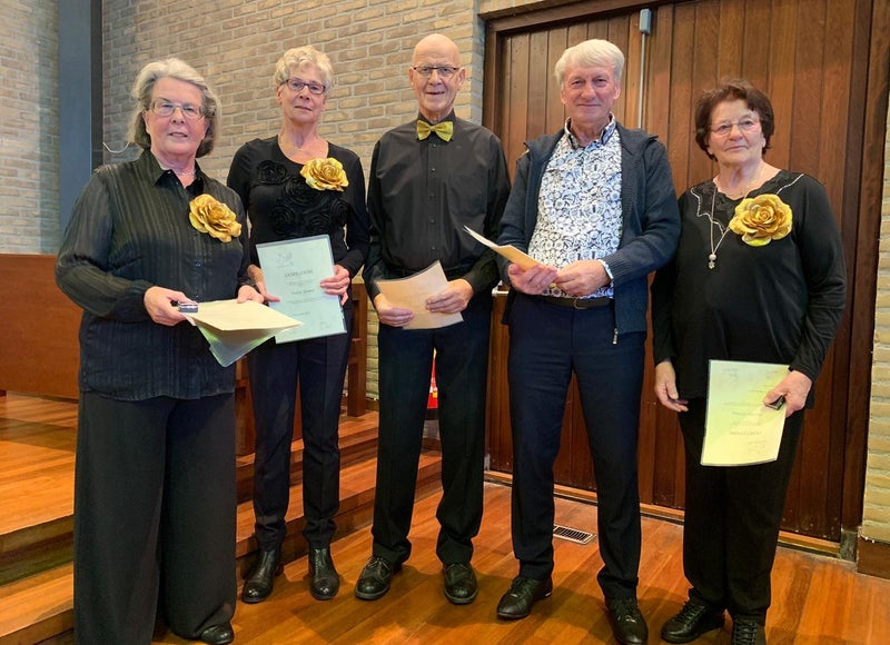 Tijdens ons 55 jarig Jubileumconcert in 2019 hebben 5 Koorleden een speldje en een oorkonde ontvangen.